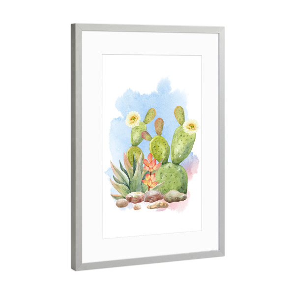 Poster mit Rahmen Silber "Blühende Kakteen" artboxONE - Natur,Floral