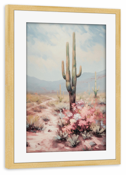 Poster mit Rahmen kiefer "Kakteen Wüste" artboxONE - Natur,Floral,Abstrakt