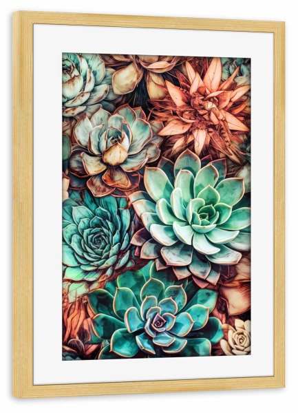 Poster mit Rahmen kiefer "Sukkulenten und Kakteen H" artboxONE - Natur,Floral - Sukkulenten,Kakteen,Kaktus,Natur,Blumen,Botanische,Blatt,Blumen