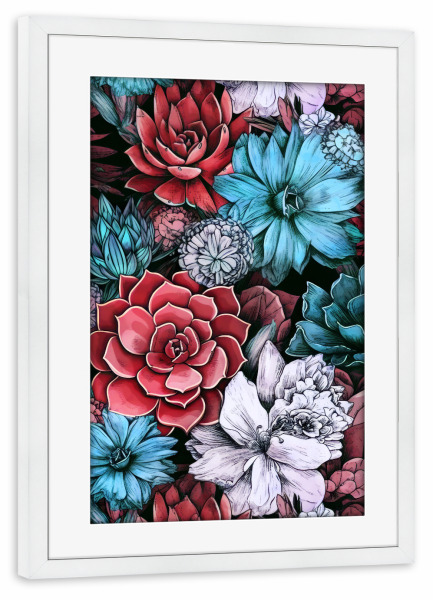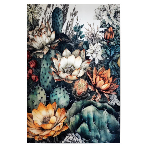 Poster mit Rahmen weiß "Sukkulenten und Kakteen G" artboxONE - Natur,Floral - Sukkulenten,Kakteen,Kaktus,Natur,Blumen,Botanische,Blatt,Blumen