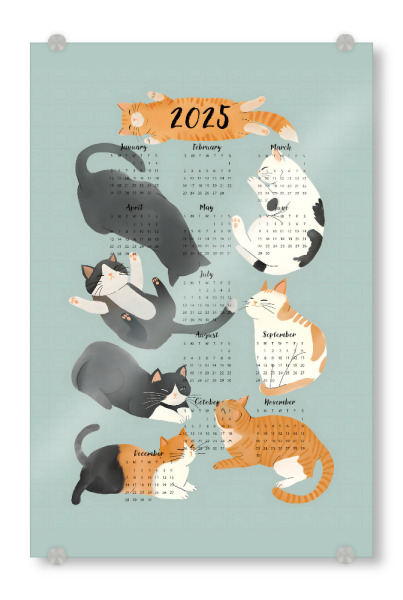 Acrylglasbild "Katzenkalender" artboxONE - Tiere,Lustig - Katze,Katzenliebhaber,Kalender,2025,Neujahr,Weihnachten,Malerei,Kätzchen