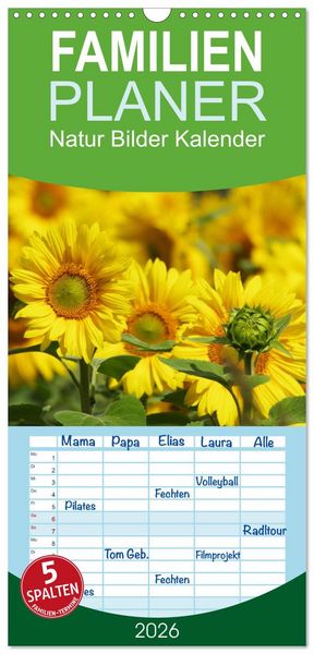 Familienplaner 2026 - Natur Bilder Kalender mit 5 Spalten (Wandkalender, 21 x 45 cm) CALVENDO