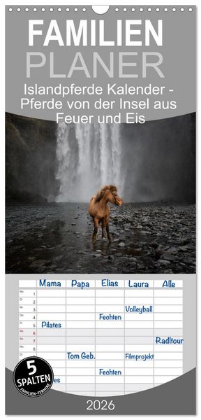 Familienplaner 2026 - Islandpferde Kalender - Pferde von der Insel aus Feuer und Eis mit 5 Spalten (Wandkalender, 21 x 45 cm) CALVENDO