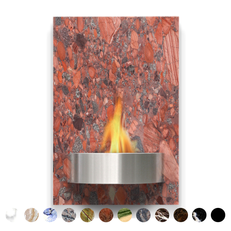 Hochwertige Stein Ethanol Kamin massiv und langlebig auf Maß bestellen roter Marmor mit wunderschöner Optik konfigurieren und bestellen