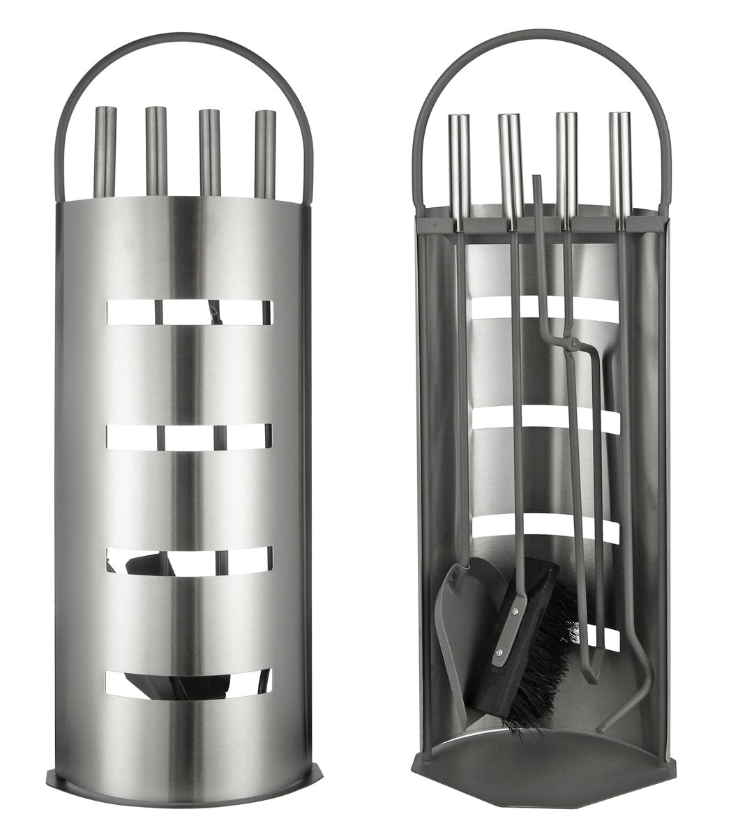Kaminbesteck Kamingarnitur Kaminzubehör Edelstahl matt gebürstet Griffe Edelstahl