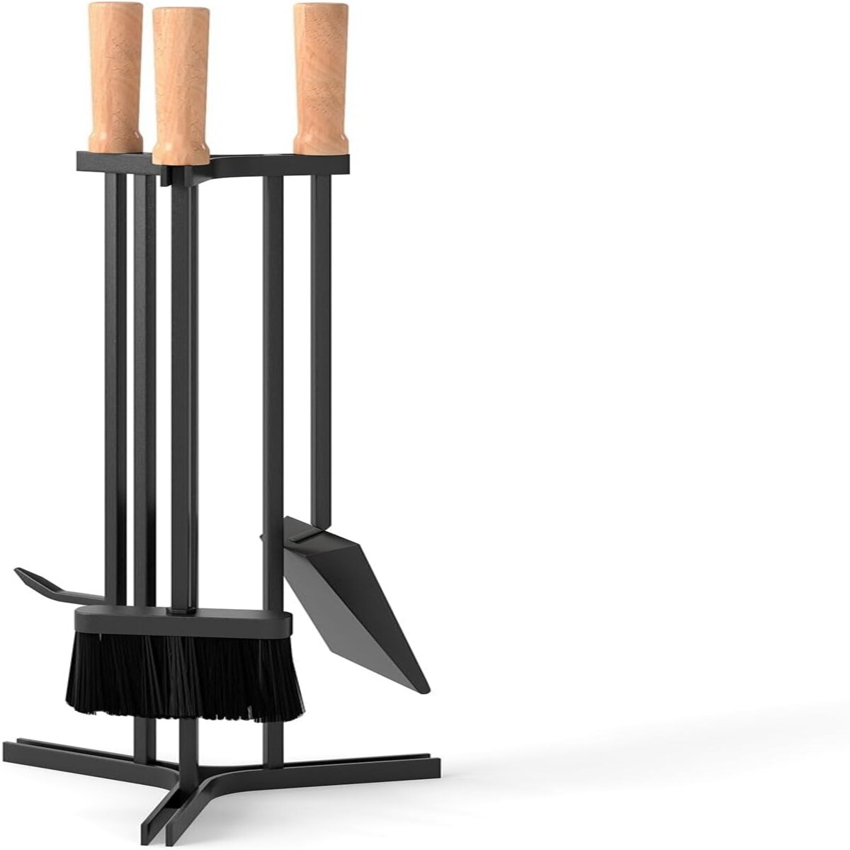 3-teiliges Kaminbesteck-Set - Modernes Kaminzubehör mit Bürste, Schaufel und Schürhaken - Runder Bodenhalter - 52,5 cm hoch - Mischgriff