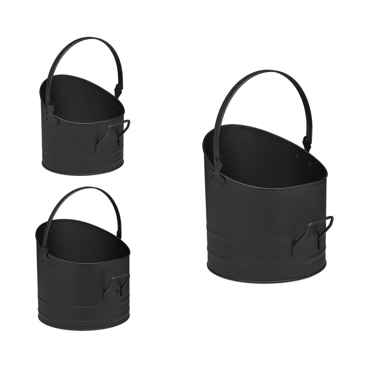 Relaxdays Pelleteimer 3er Set, ∅ je 21, 25 & 30 cm, Griff & klappbarer Henkel, Metall Kohleeimer, Kaminzubehör, schwarz