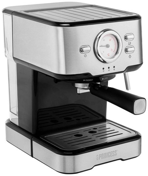 Princess 01.249412.01.001 Kapselmaschine Edelstahl, Schwarz mit Milchaufschäumdüse, mit Druckbrühsystem, mit Filterkaffee-Funktion