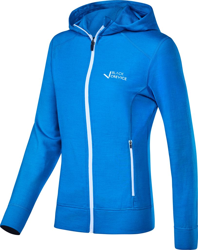 BLACK CREVICE - Damen Merino Kapuzenjacke | Mulesingfrei | Farbe: Blau | Größe: 46