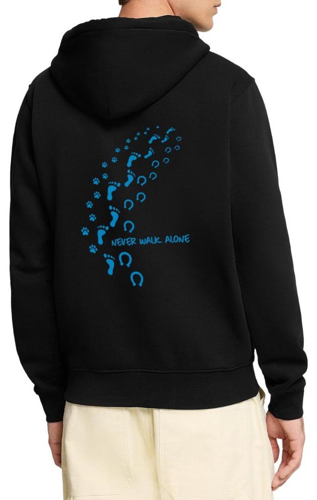 Spreadshirt Never Walk Alone Hund Mensch Hufabdrücke Kapuzenjacke Herren, XS, Schwarz