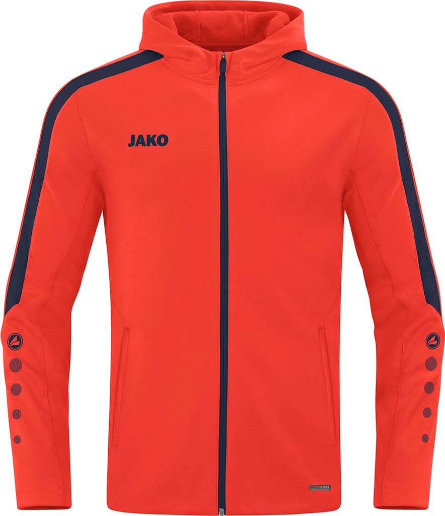 JAKO Kinder Kapuzenjacke Power, Farbe:flame/marine, Größe:128