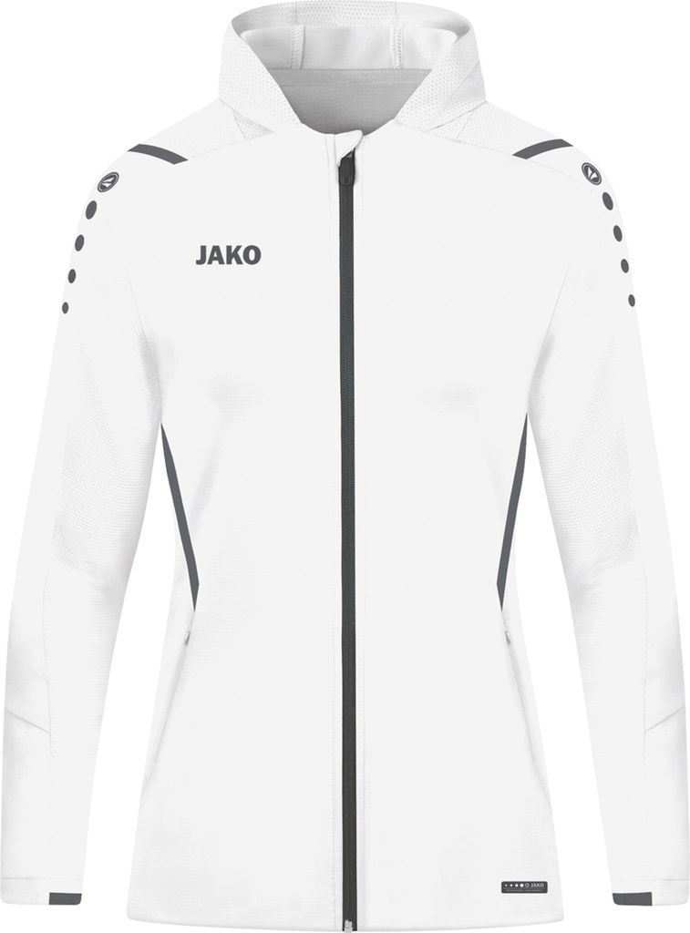 JAKO Damen Kapuzenjacke Challenge, Farbe:weiß/anthra light, Größe:44