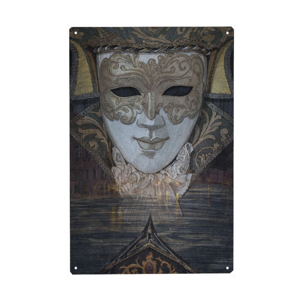Holzbild "Venedig-Illustration" artboxONE - Städte / Venedig - Gondel,Venedig,Maske,Karneval,Kostüm karneval karneval,Romantisch,Retro,Illustration