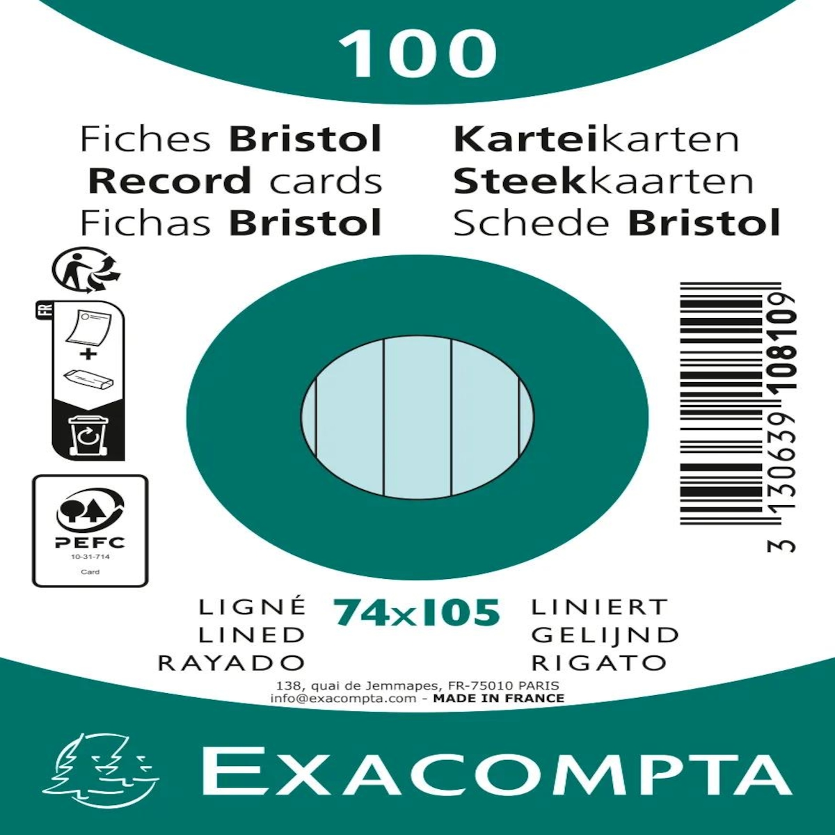 Exacompta 13203E 12x Karteikarten aus 205g holzfreiem, kalibriertem Karton. Verpackt zu je 100 Blatt. - Weiß
