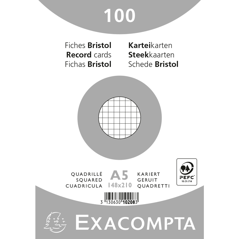 EXACOMPTA Bristol Karteikarten, 21 cm x 29,7 cm, DIN A4, 205 g/m², 100er-Pckg., Kariert