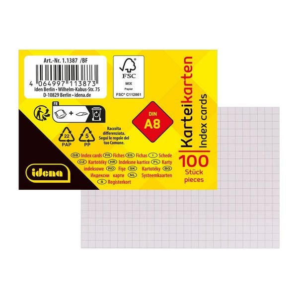 Idena Karteikarten kariert 180g/m² weiß DIN A8 100 Stück