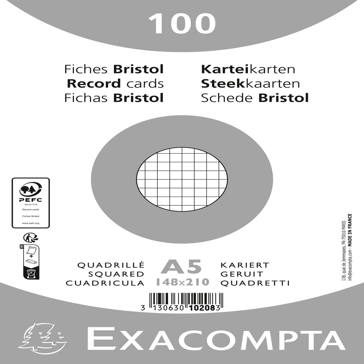 EXACOMPTA Karteikarten DIN A5 kariert weiß 100 Karteikarten