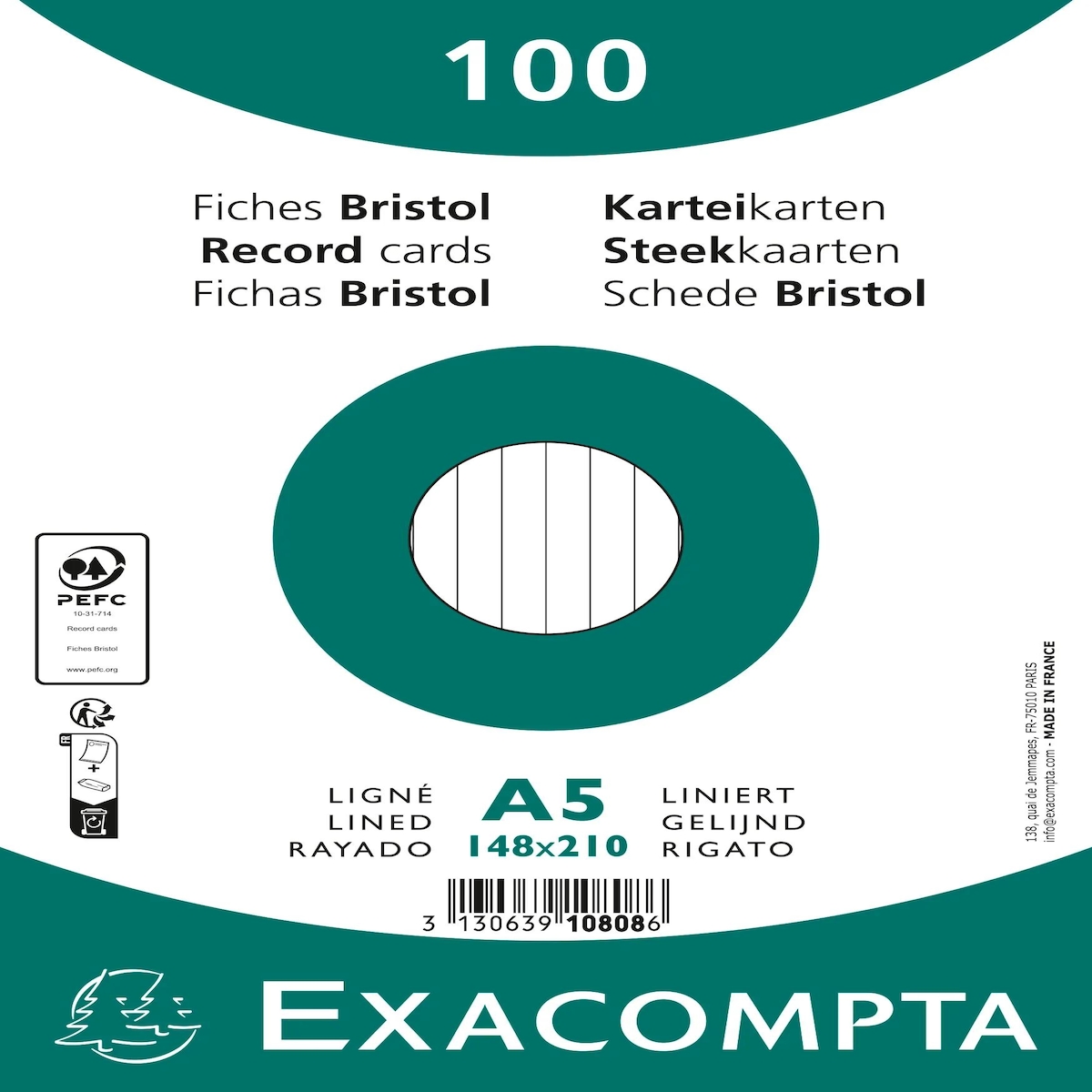 Exacompta 10x Karteikarten A5 100 Stück, liniert, nicht gelocht sortiert 10858E