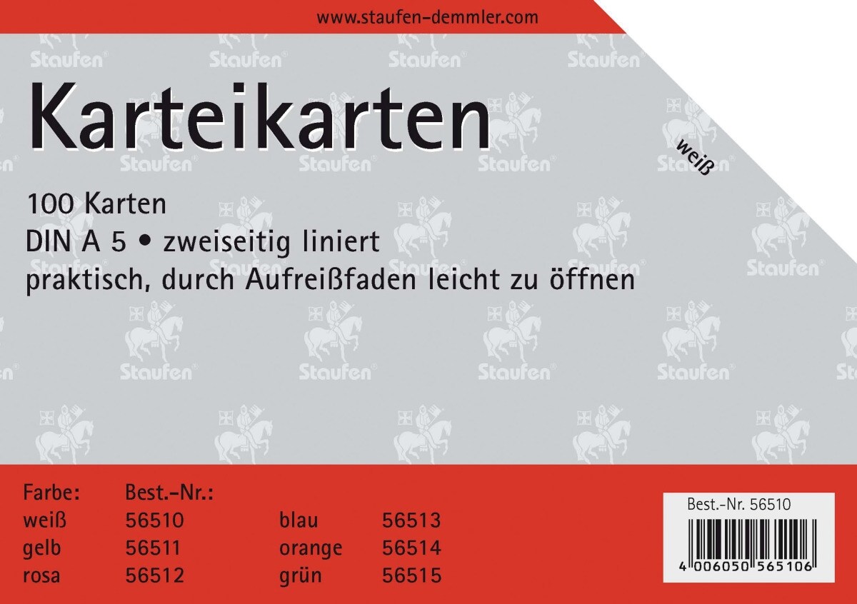Staufen Karteikarten A5 liniert 180g/qm weiß VE=10x100 Stück