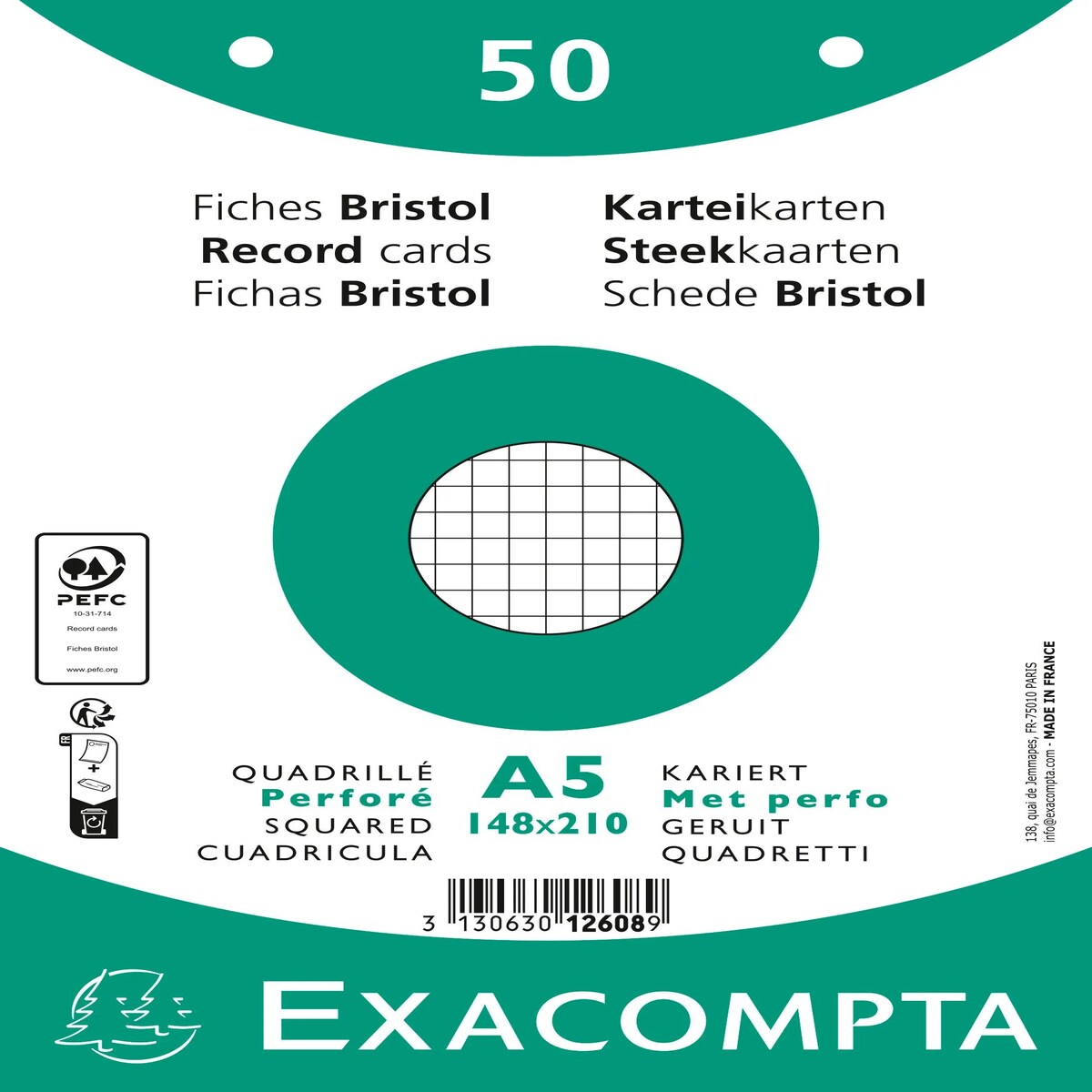 Exacompta 12608E 20x - Karteikarten A5 kariert Weiß