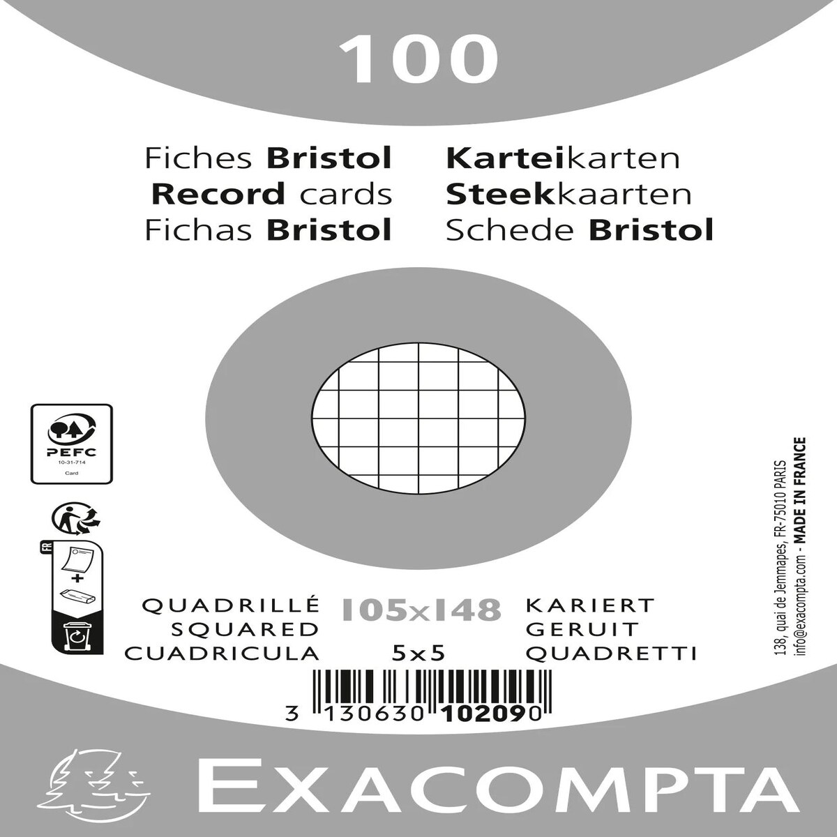 Exacompta Karteikarten 10254E A6 kariert sort. 100 Stück