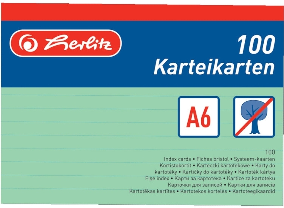 herlitz Karteikarten A6 liniert grün VE=100 Stück