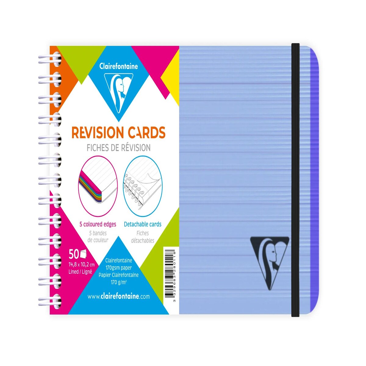 Clairefontaine 5x Linicolor FRESH, Spiralheft A6 mit Karteikarten, 15,2x10,2 cm, 50 Karteikarten liniert, 5 Farbstreifen, Einband PP - Blau 328011C