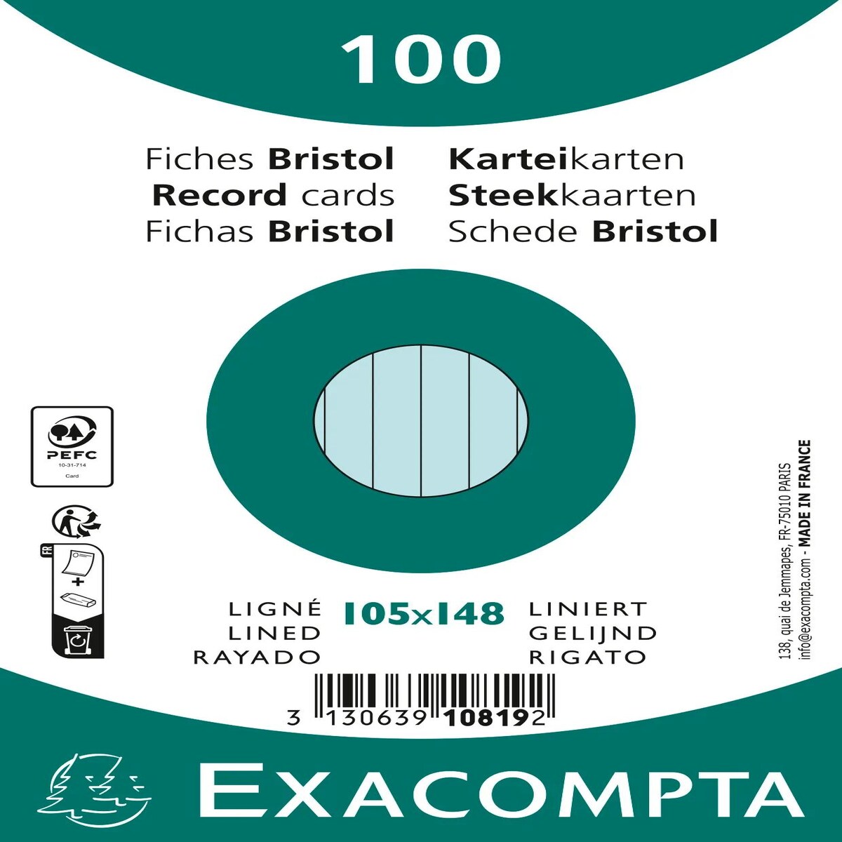 Exacompta 20x Karteikarten A6 liniert, 100 Stück eingeschweißt - Weiß - 10809SE