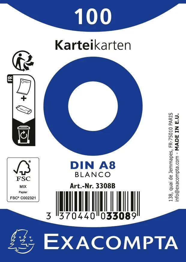 EXACOMPTA Karteikarten DIN A8 blanko weiß 100 Karteikarten