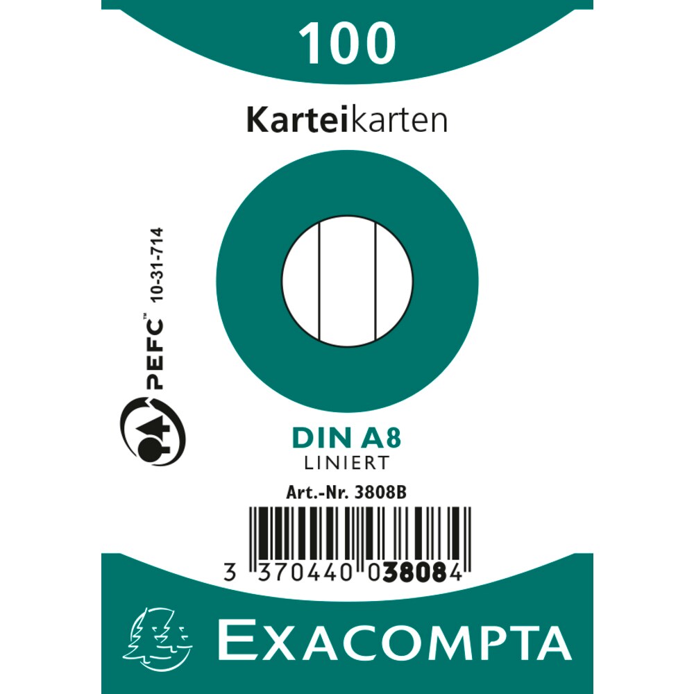 EXACOMPTA Karteikarten DIN A8 liniert weiß 100 Karteikarten