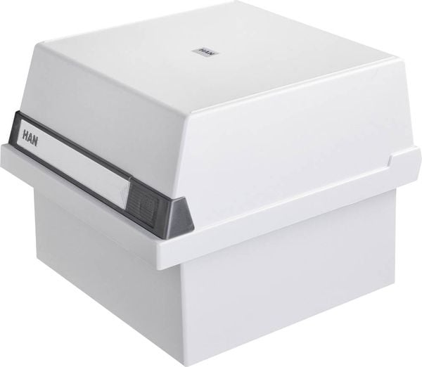 HAN Karteikasten DIN A5 quer Kunststoff weiß transluzent für 450 Karten unbestückt