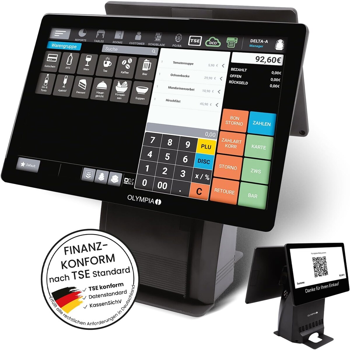 Olympia Registrierkasse Kassensystem T215DK 10,1 Zoll Premium Handel Gastronomie