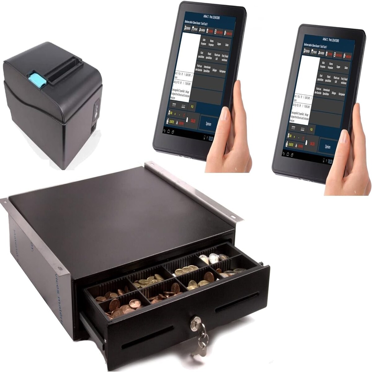 Mobiles Kassensystem für Gastronomie: Bondrucker, Terminal 10", Geldlade