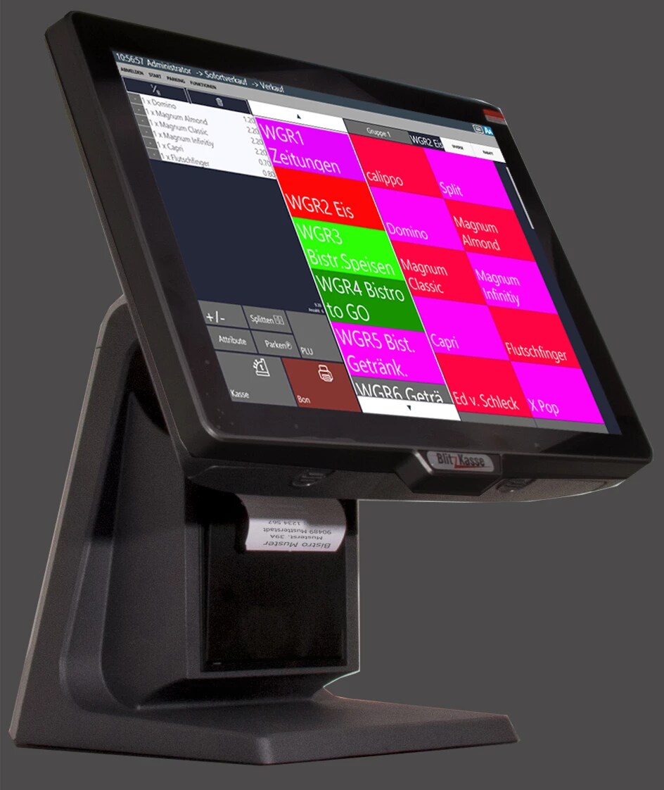 Blitzkasse 15" All-in-ONE Kassensystem für Gastronomie: Touschscreen, Bondrucker, Kundenanzeige