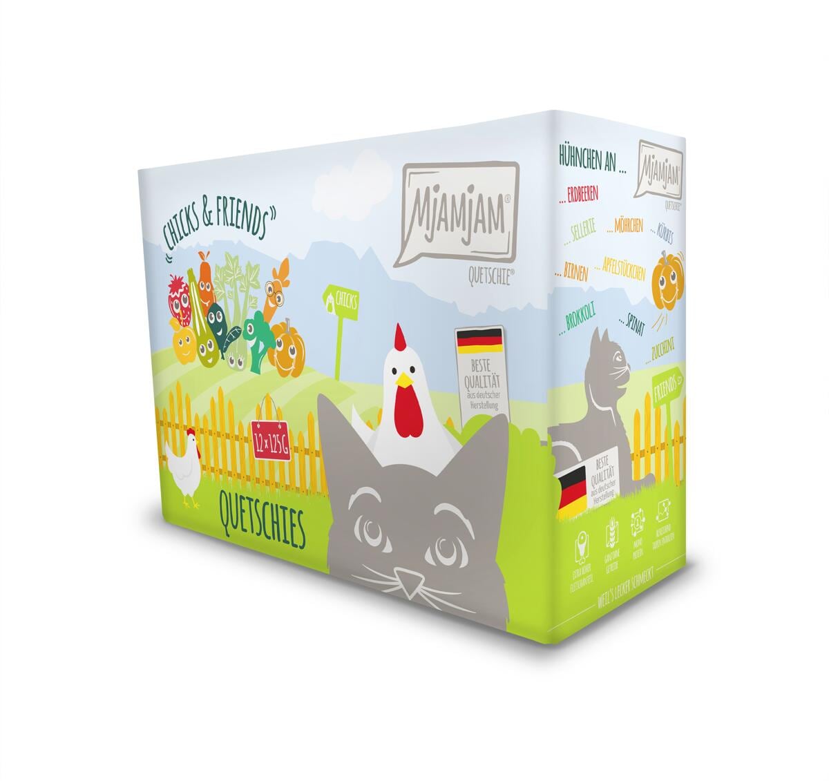 Mjamjam Chicks & Friends Quetschie Box Katzenfutter, 12x125g