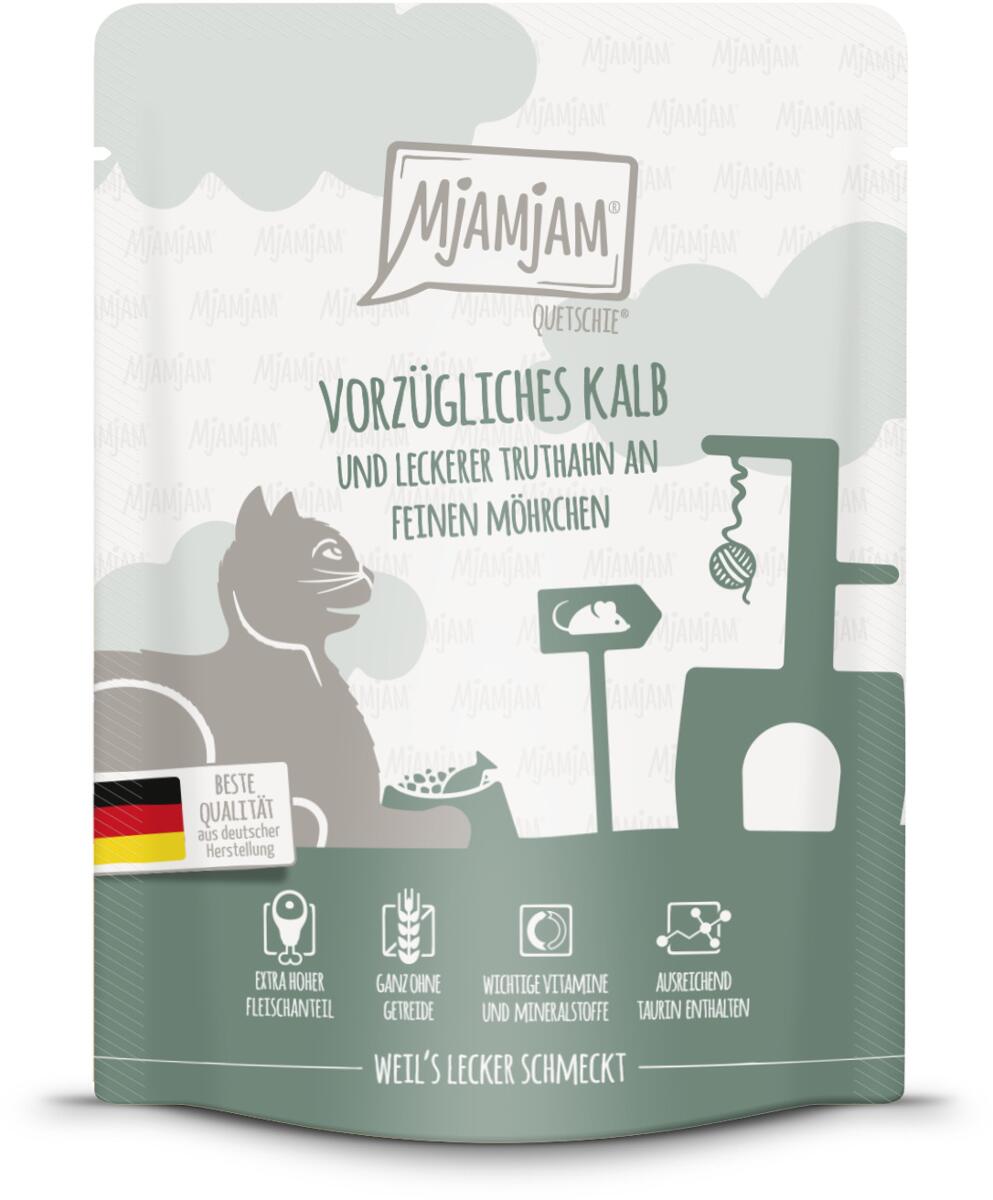 Mjamjam Quetschie Katzenfutter mit Kalb & Truthahn, 6x300g