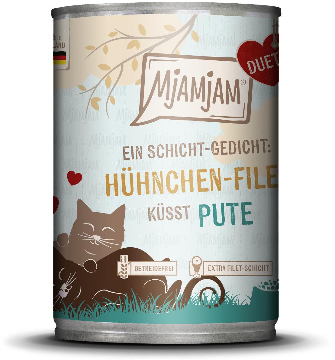 Mjamjam Duett Katzenfutter Hühnchen-Filet küsst Pute, 6x390g