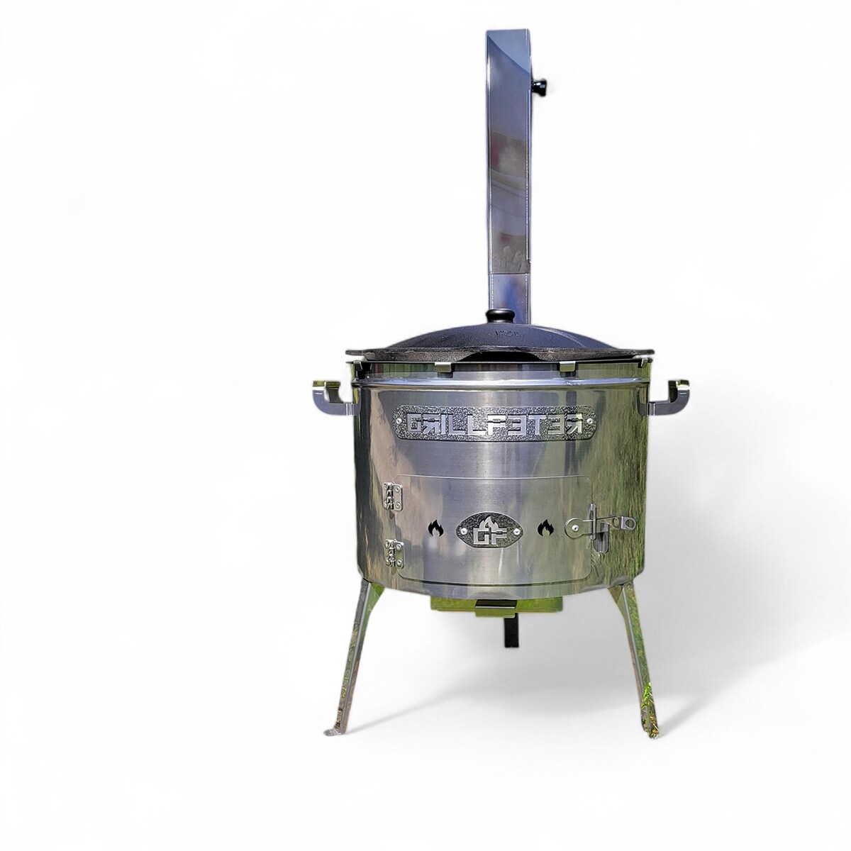 Grillpeter Utschak aus Edelstahl 2mm mit Rauchrohr Timur mit Kazan aus Gusseisen 12L