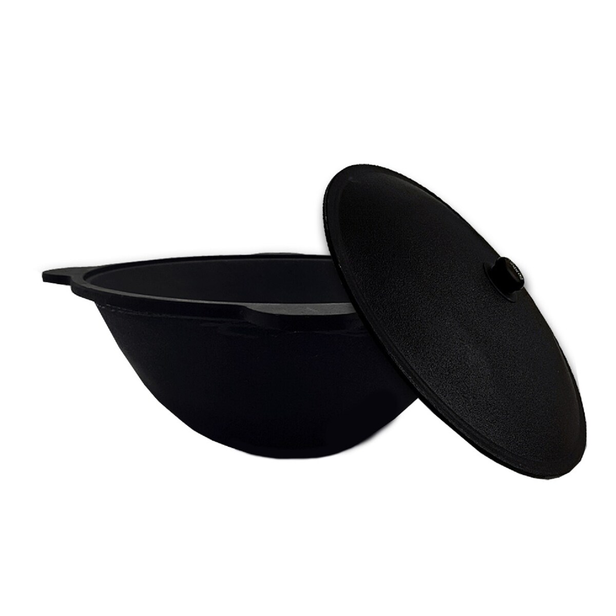 Usbekischer Gusseisen-Kazan 10L mit Aluminiumdeckel – runder Boden, ideal für Camping & BBQ