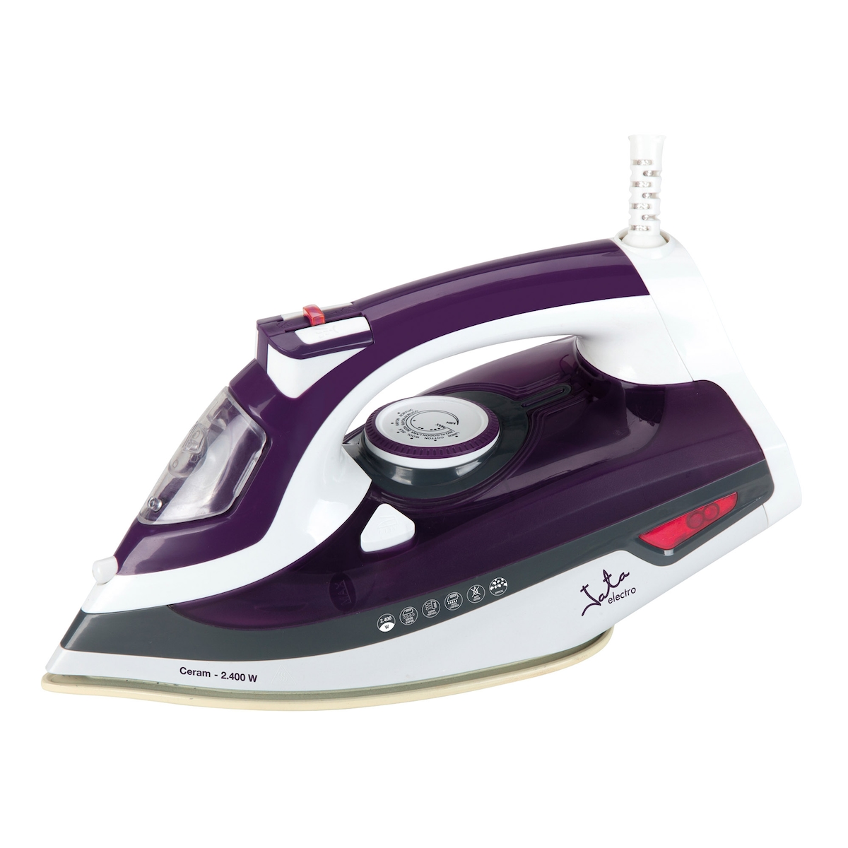 JATA PL221C Bügeleisen Dampfbügeleisen Keramik-Ultra-Glide-Sohlenplatte 2400 W Grau, Violett, Weiß