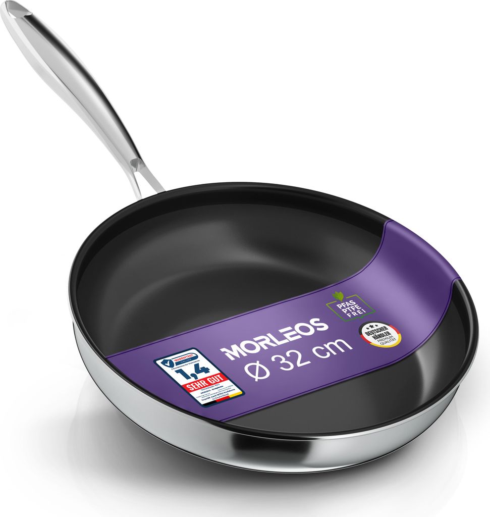 Morleos Keramikpfanne 32cm | Vollbeschichtet | 5-Schicht - 3mm -1,67 kg | Premium Bratpfanne für Induktion | Antihaft, Omelettpfanne Eierpfanne | ...