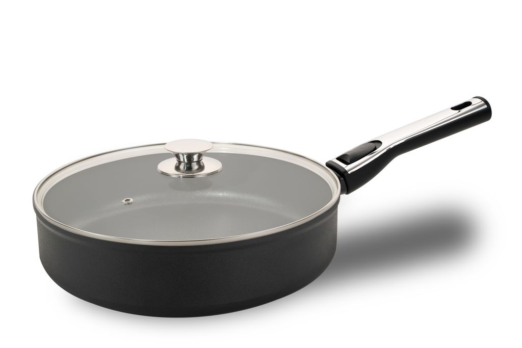 Genius Cerafit Steel Bratpfanne 28cm + Glasdeckel - ofenfeste Keramikpfanne mit abnehmbarem Griff für alle Herdarten; A24665