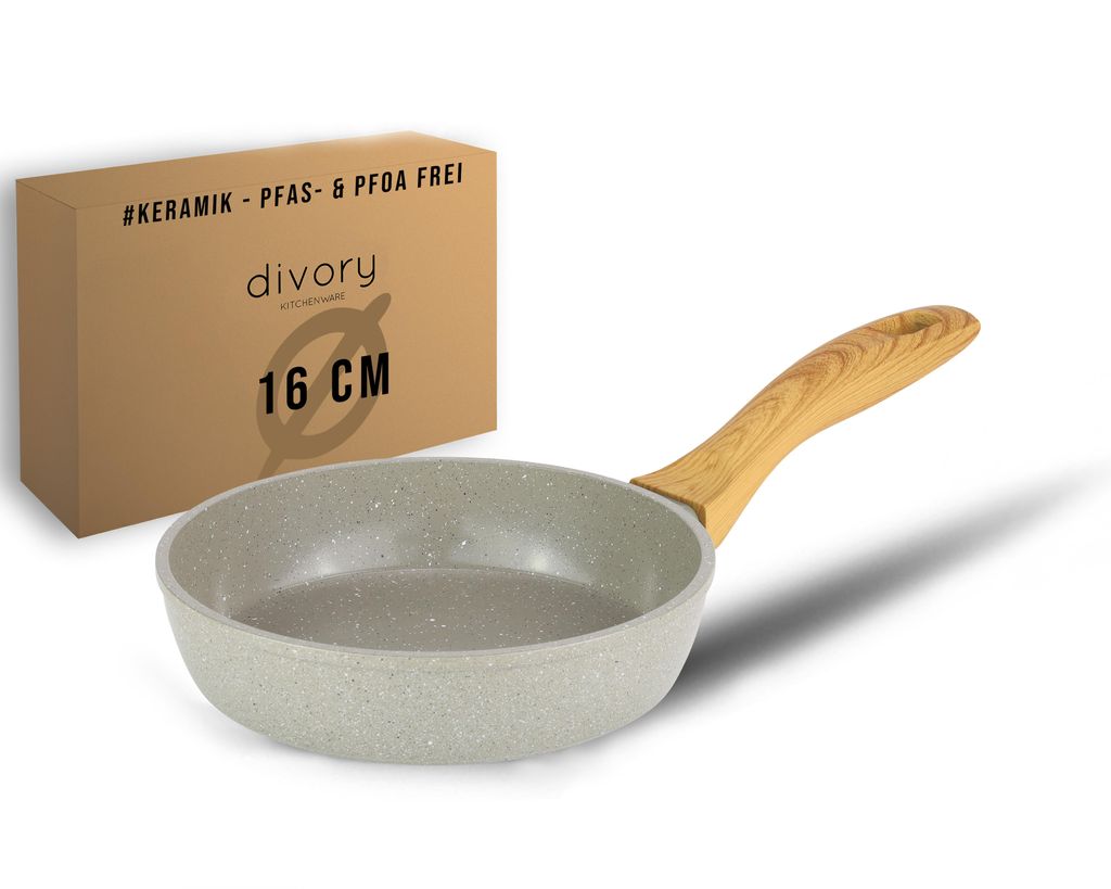 DIVORY Keramikpfanne 16cm | Induktion Pfanne mit Keramikbeschichtung | PTFE frei | Kleine Bratpfanne Keramik | Mini-Pfanne | Eierpfanne beschichtet