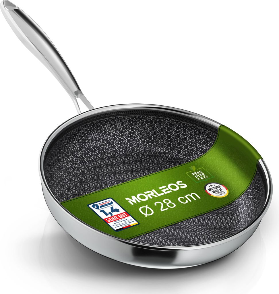 Morleos Keramikpfanne Ø 28cm | Kratzfeste Wabenpfanne | 5-Schicht - 3mm -1,35kg | Premium Bratpfanne für Induktion | Antihaft, Backofenfest & Sp...