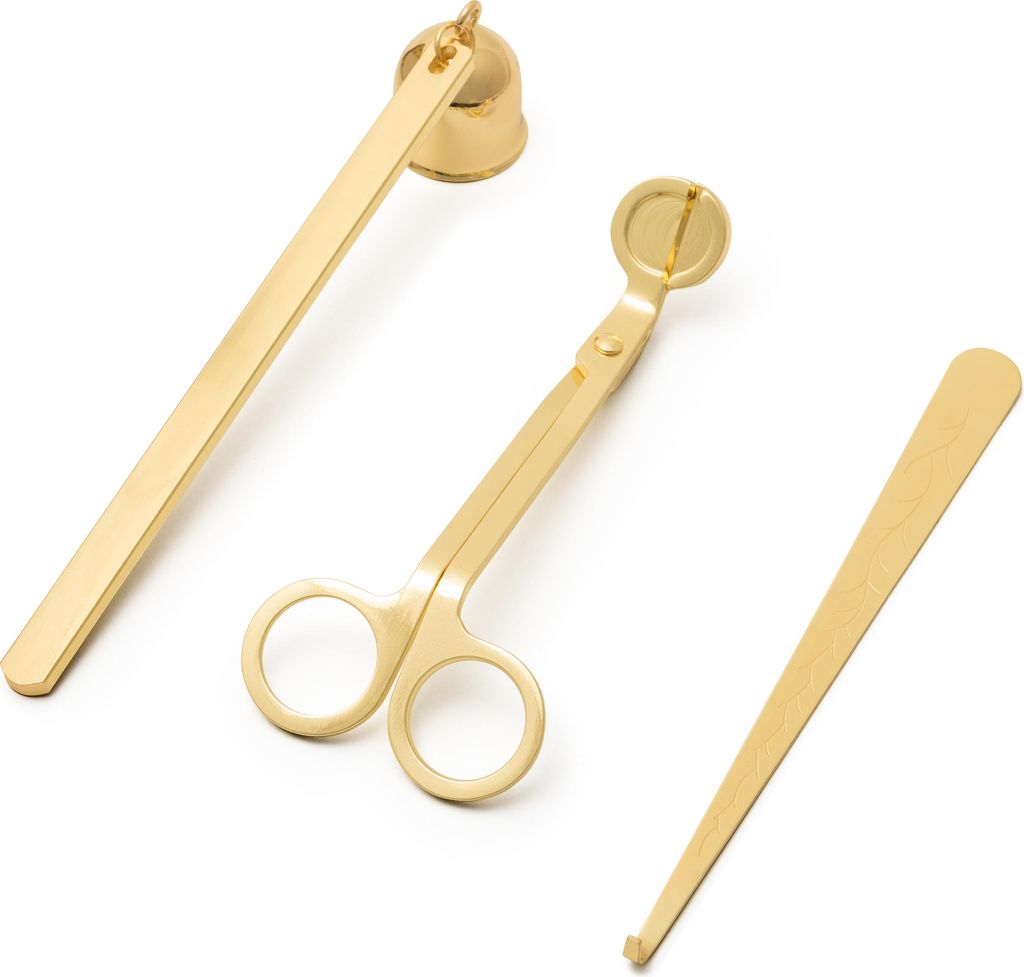 Kerzenzubehör-Set - Schere, Stiel und Kerzenlöscher - Gold