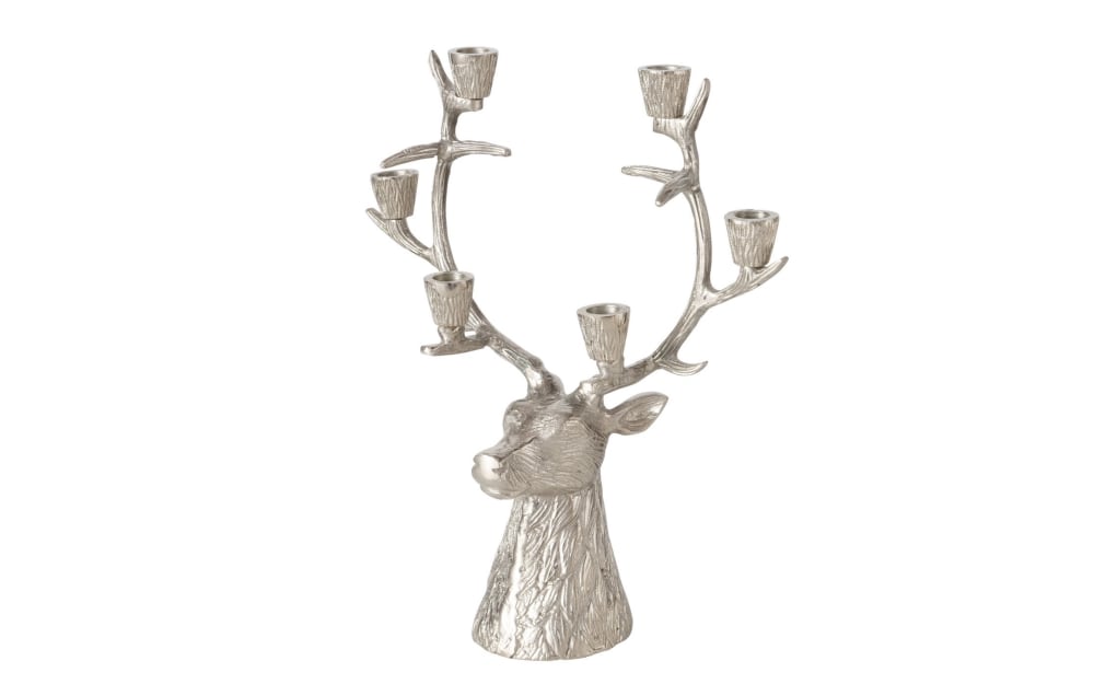Kerzenleuchter Silvarno Silber Hirsch Design Aluminium 4-flammig