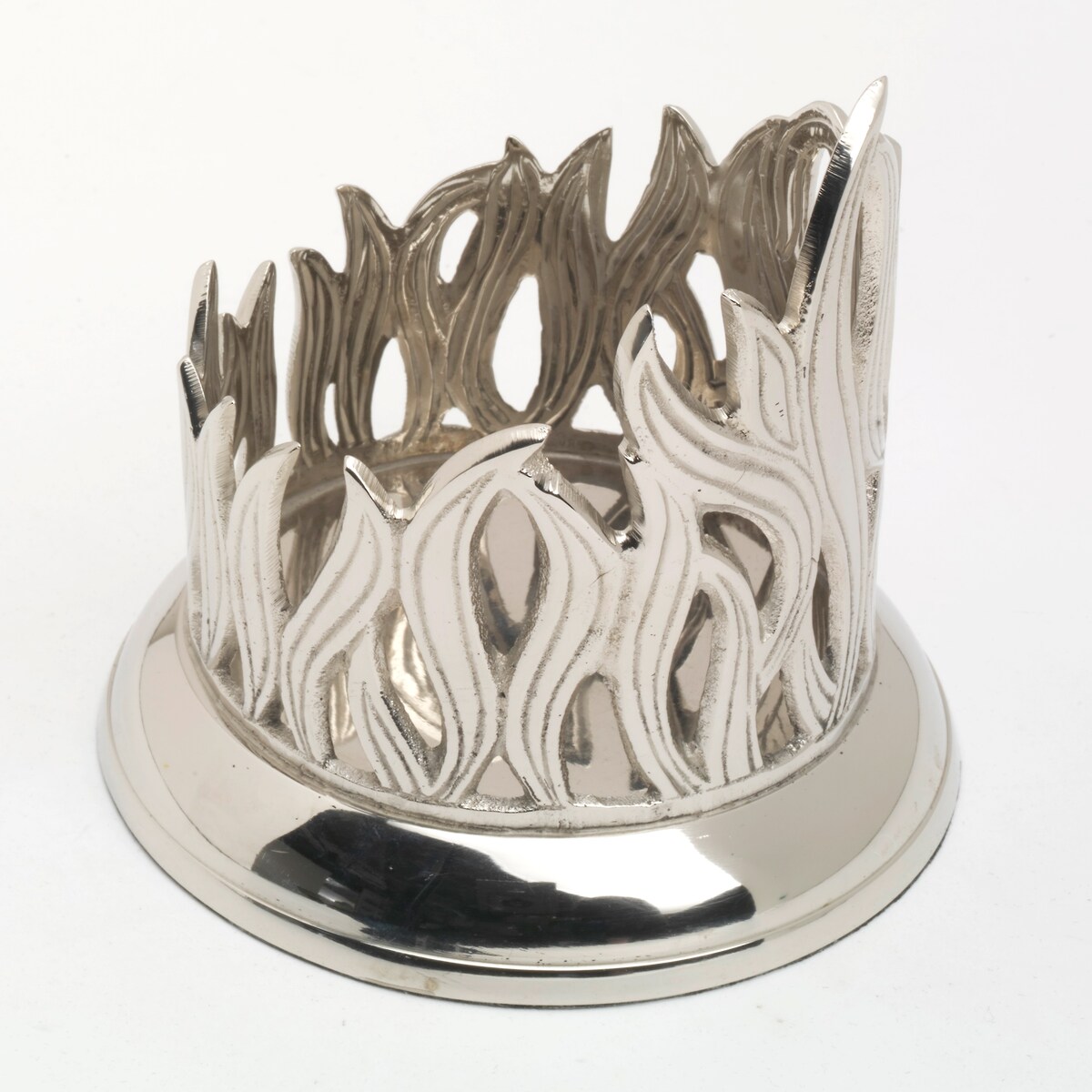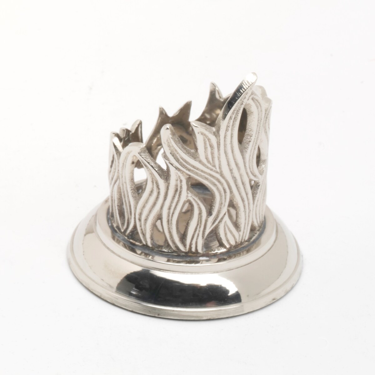 Kerzenleuchter Flammen Design für Ø 7 cm Kerzen, Messing vernickelt Silber