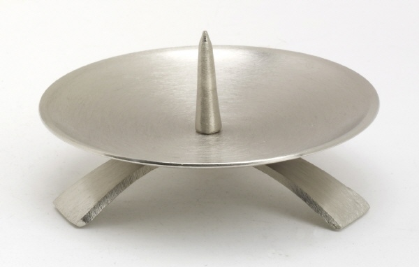 Kerzenleuchter Dreifuß Silber gebürstet großem Dorn Ø 11,5 cm, für Taufkerzen, Kommunionkerzen