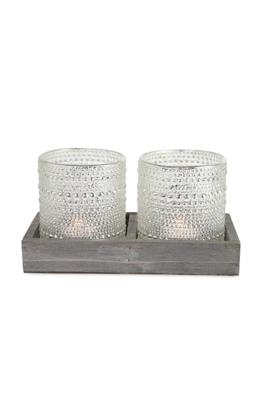 Kerzenleuchter aus Glas 3er Set Kerzenglas Windlicht Weihnachten silber Stumpenkerzen