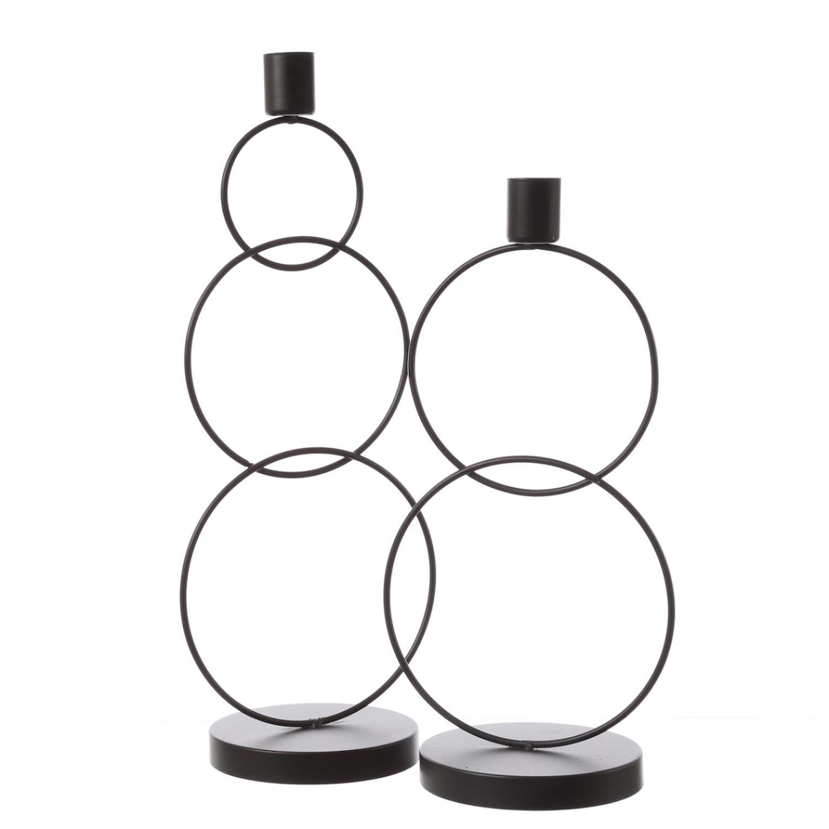 MARELIDA Stabkerzenhalter Kerzenständer 2 u. 3 Ringe Tafelkerzenhalter schwarz 2er Set